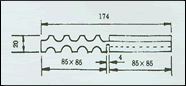 85 X 42.5 、85 X 85、131.5 X 85、174 X 85、220.5 X 85、263 X 85、174 X 174、263 X 174等,可以基本塊為單位。根據(jù)需要任意拼裝,每一基本塊使用的橡膠硬度又分為40°、60°、80°、三種規(guī)格,以適應(yīng)不同垂向設(shè)計(jì)負(fù)載。